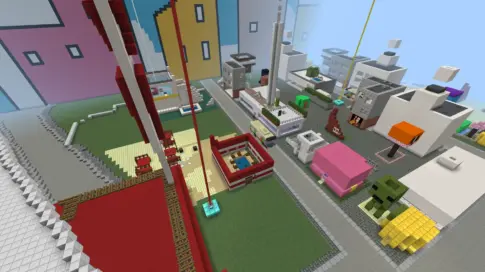 今日は、さっそくマインクラフトの世界に飛び込み、みんなで楽しんでいました。学校の友達の男の子と、何階建ての建物を作れるか競争しているそうです。「今日は20階まで作るんだ!」という声が聞こえ、協力しながら頑張っていましたね。