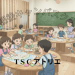 「今日のご飯は何かな?」と気になり始める子どもたち。「さっき揚げ物っぽいのが見えたよ!」「じゃあ、から揚げじゃない?」と予想合戦が始まります。子どもたちの顔は興味津々で、みんな食事の時間が待ちきれない様子です。「正解はから揚げだよ」と伝えると、「やった~!」と喜びの声が部屋いっぱいに広がり、飛び跳ねる子もいました。食卓につくと、「いただきます!」と元気な声が響き、サクサクのから揚げを美味しそうに頬張ります。苦手な食べ物はお友達と交換しながら、「これ美味しいね!」「チキンナゲット最高!」などと、楽しそうな会話が弾んでいました。
